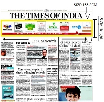 Bangalore Times Front Page Advertisement Rate: This is one of the most popular choices for ad placement. Ads on the front page attract more attention hence cost higher than other placement options.